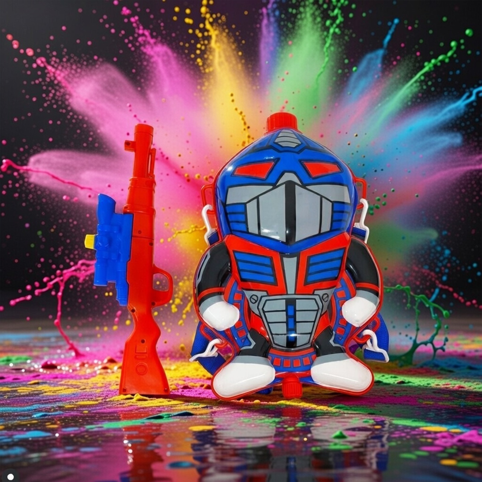 Get ready for non-stop water battle fun with the Hydro Cop Water Tank. Designed with a cool police-style look, this water tank toy adds excitement and action to every splash-filled adventure. The large-capacity tank allows kids to play longer without frequent refills, making it perfect for energetic outdoor fun. Easy to carry and comfortable to wear, the Hydro Cop Water Tank encourages active play, teamwork, and imagination. Made from durable, child-safe material, it is ideal for summer games, water fights, and festive celebrations.